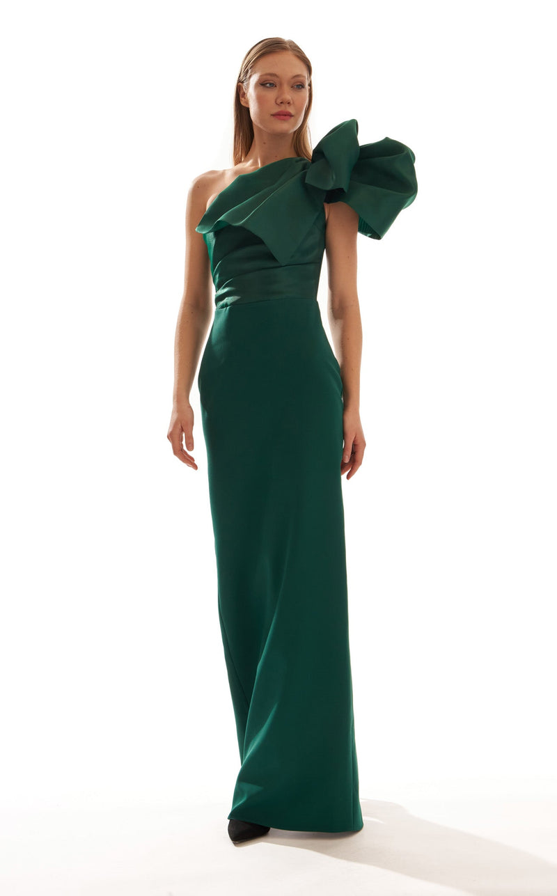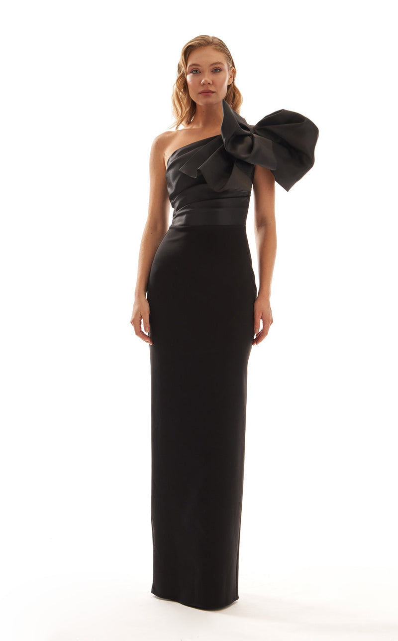 Unleash your inner icon with this asymmetrical Hot Contact 5220 dress. With a sculpted, statuesque silhouette, the luxurious black fabric hugs your curves and drapes effortlessly, creating a striking visual. The oversized bow at the shoulder serves as an eye-catching statement, while the cinched waist enhances your figure, leading to a floor-skimming hem that screams timeless elegance. Bold and refined, this gown is made for moments when you want to leave a lasting impression.